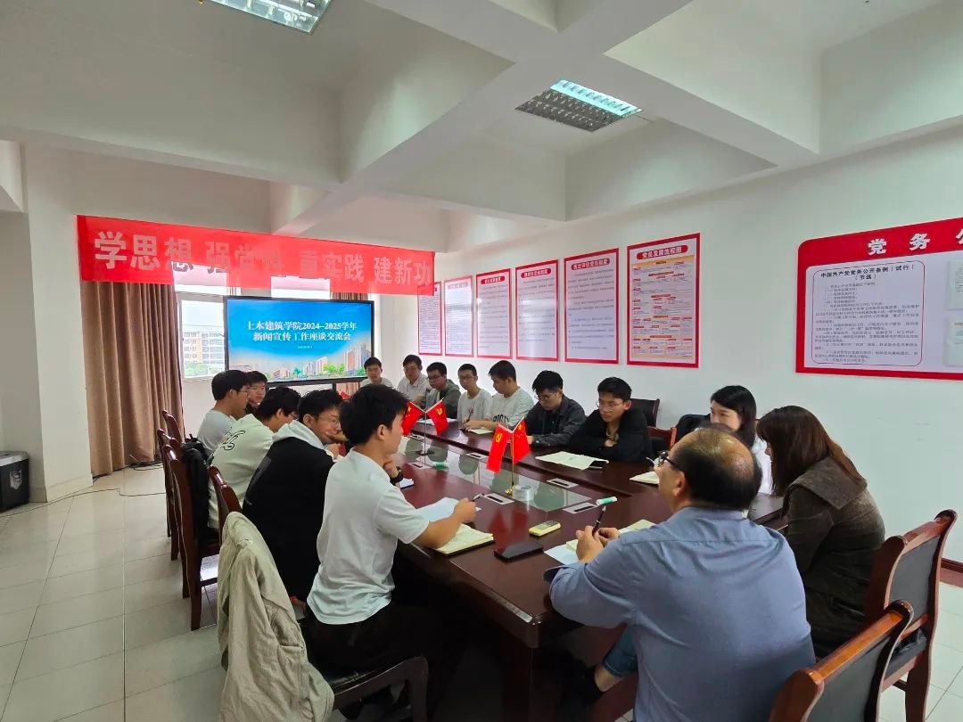 为进一步提升学院新闻宣传工作水平,10月16日上午十点,土建学院于土建楼500召开新闻宣传工作座谈交流会。院党委副书记郑轶,学工办主任兼团委书记万雯怡,学工办副主任、团委副书记贺慧文,融媒体中心负责老师黄伟豪出席会议。研会宣传部负责人,融媒体中心主任及各部长与会。