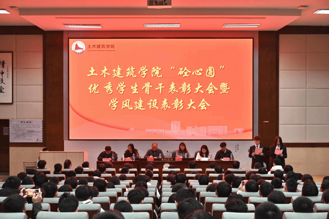 为总结成绩,表彰先进,更好地发挥优秀学生骨干的模范带头作用,推进学院学团工作再创佳绩,并带动优良学风的形成,12月12日晚,土建学院于南区图书馆202召开2024年度“砼心圆”优秀学生骨干表彰大会暨学风建设表彰大会。土建学院党委副书记郑轶,学工办主任兼团委书记万雯怡,学工办副主任兼团委副书记华罗娟、贺慧文,兼职团委副书记严安迪,融媒体中心负责老师黄伟豪出席会议。大会由张富乐、王嘉昱同学主持,土建学院团委、学生会全体成员以及受表彰同学与会。