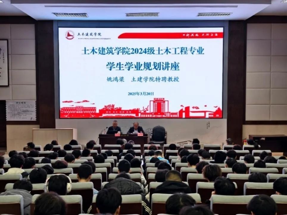 3月20日晚,土建学院特聘教授姚鸿梁于南区图书馆202报告厅作“学生学业规划讲座”,为2024级土木工程专业新生指引学业规划方向。讲座由学院党委副书记郑轶主持。副院长麻宏强,土木工程各专业方向负责人和全体辅导员参会。2024级土木工程专业学生到场聆听学习。